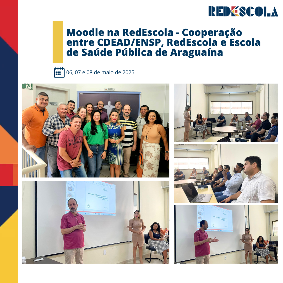 Entre os dias 6 e 8 de maio, a Escola de Saúde Pública de Araguaína recebeu a equipe da Coordenação de Desenvolvimento Educacional e Educação a Distância (CDEAD), vinculada à Vice-Direção de Ensino (VDE) da ENSP/Fiocruz, para uma formação presencial voltada à implementação do projeto Moodle na RedEscola. A atividade faz parte de uma proposta de cooperação entre o CDEAD/VDE/ENSP e a Rede Brasileira de Escolas de Saúde Pública (RedEscola).