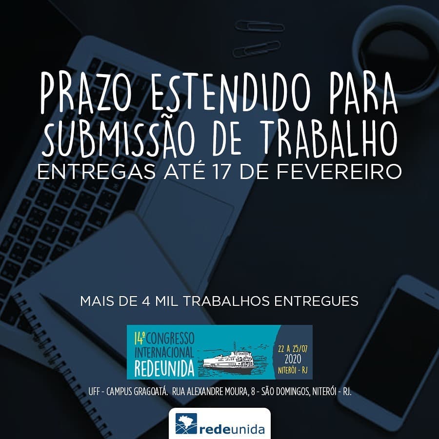 O prazo para submissão de trabalhos para o 14º Congresso Internacional da Rede Unida,foi estendido até 17 de fevereiro!