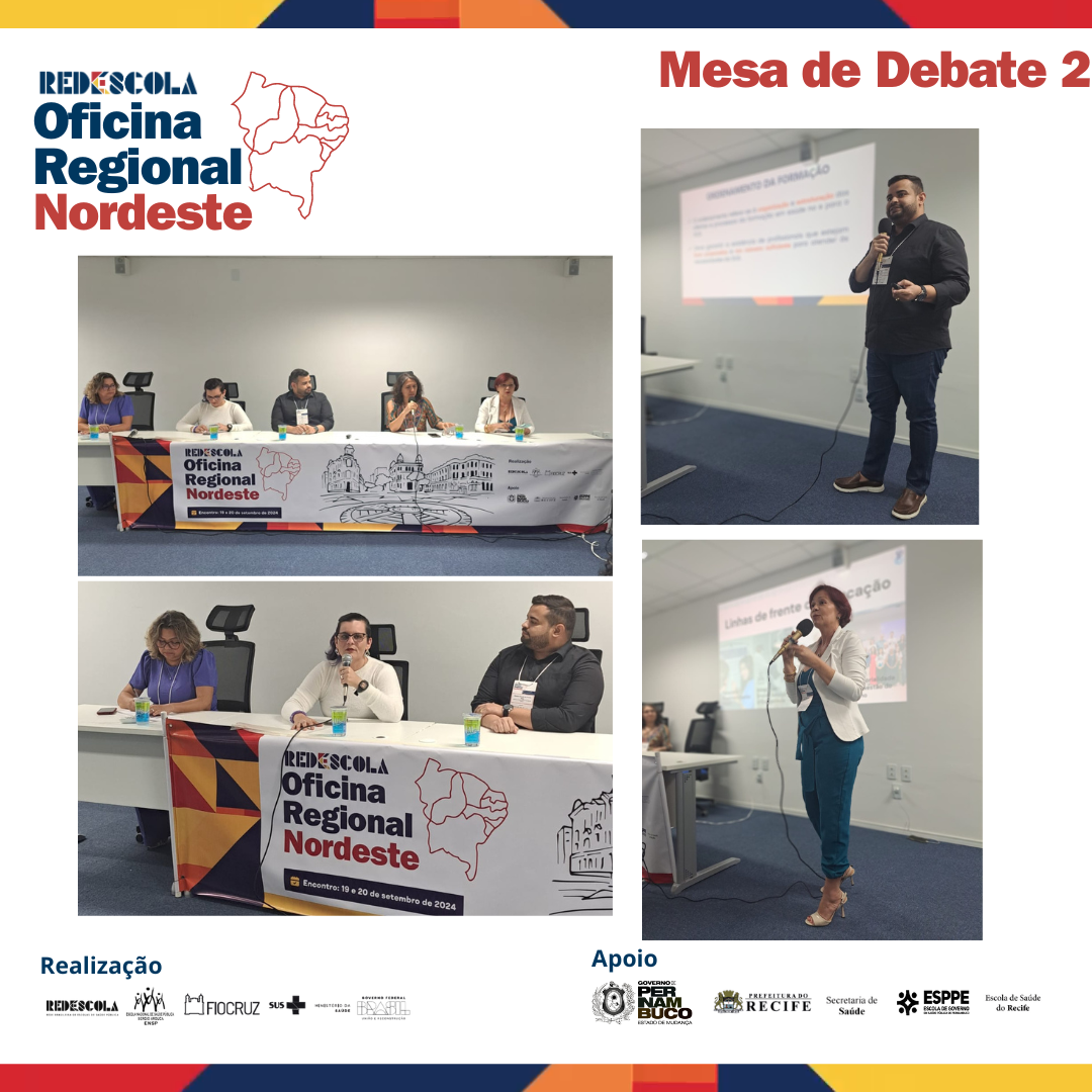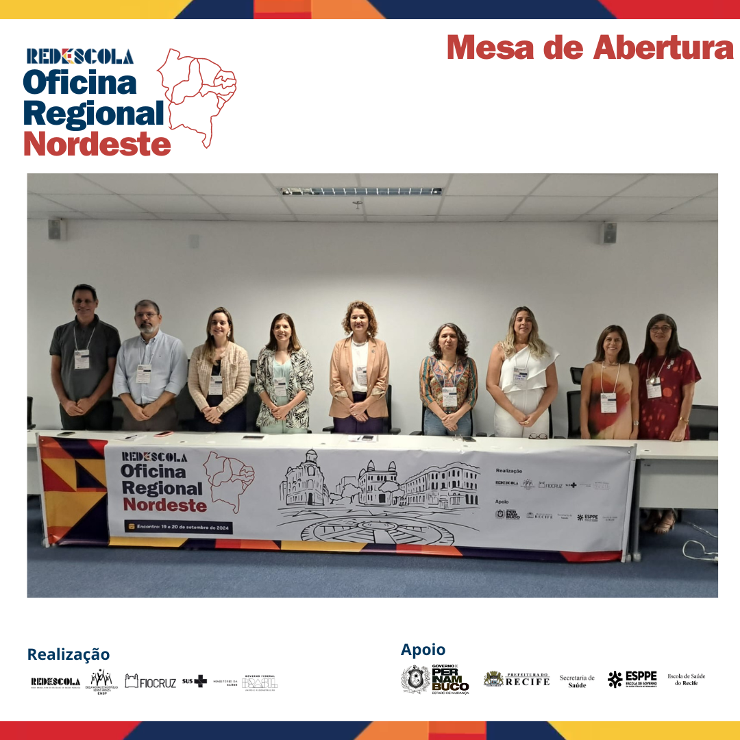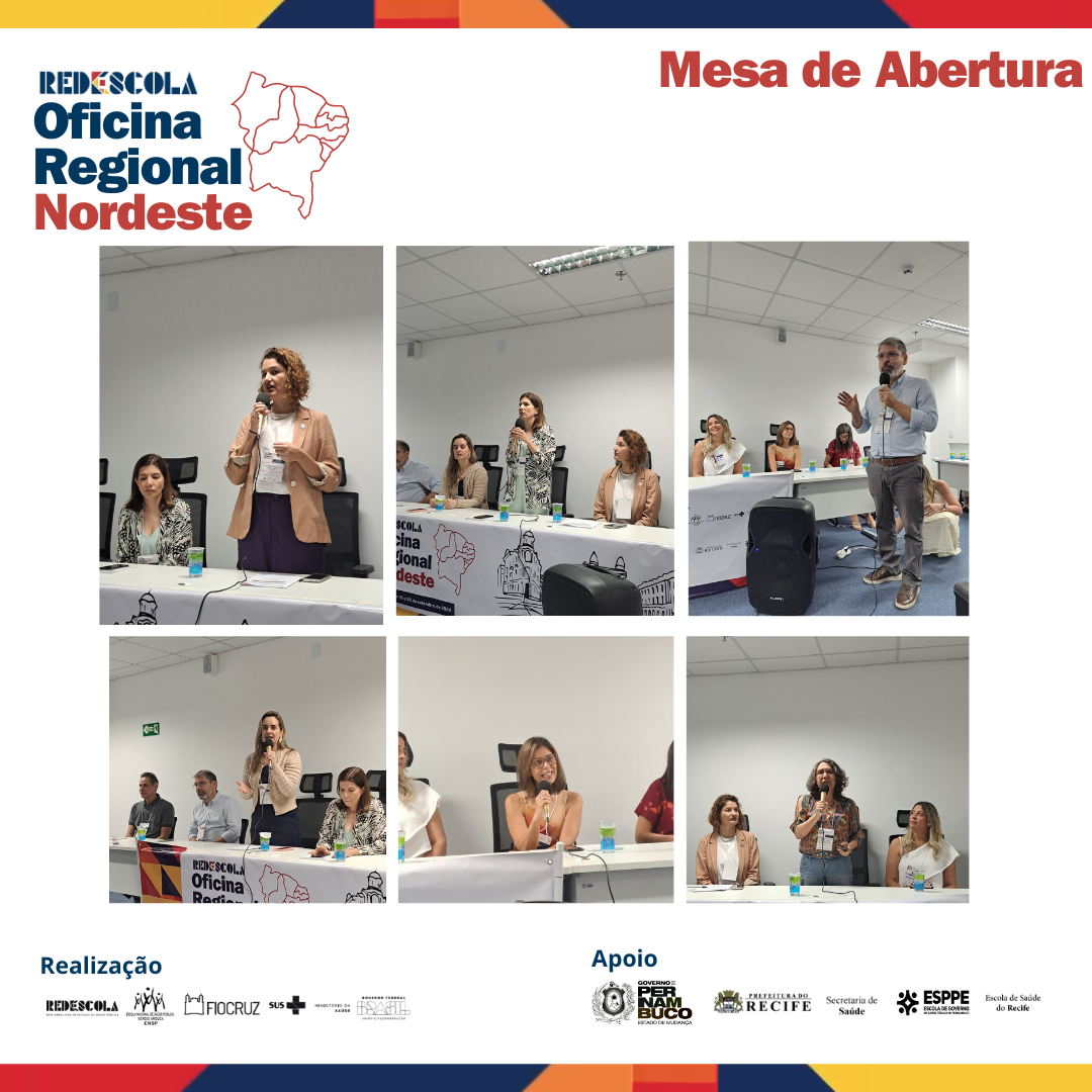 O evento contou em sua Mesa de Abertura com autoridades e representantes como, Lívia Méllo; Diretora do Departamento de Gestão da Educação na Saúde (DEGES/SGTES/MS), Luciana Albuquerque, Secretária de Saúde do Município do Recife, Andreza Barkokebas; Secretária Executiva de Gestão do Trabalho e Educação na Saúde (SEGTES/SESAU/Recife), Leidjane Virães; Representante do Conselho de Secretarias Municipais de Saúde de Pernambuco (COSEMS/PE), Célia Borges; Diretora da Escola de Governo em Saúde Pública de Pernambuco (ESPPE), Alberto Luiz Alves de Lima; Gerente da Escola de Saúde do Recife (ESR), Domício Aurelio Sá; Docente-Pesquisador do Instituto Aggeu Magalhães (Fiocruz Pernambuco) e Márcia Fausto; Coordenadora da Secretaria Técnica e Executiva da RedEscola;