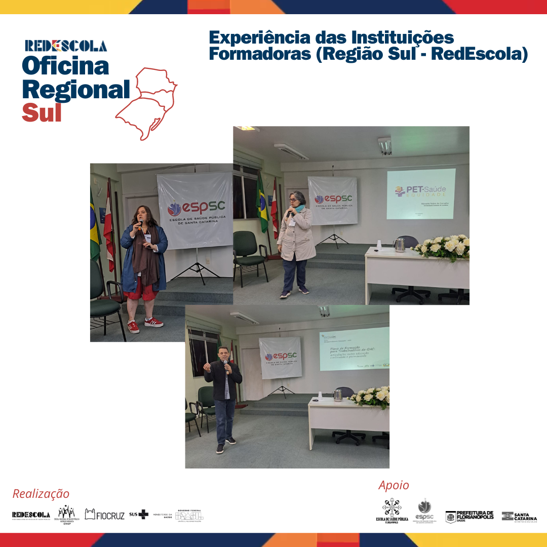 Após um primeiro dia de intensas discussões e troca de experiências, a Oficina Regional Sul RedEscola continua com uma programação voltada para a partilha de práticas inovadoras na formação dos trabalhadores do SUS, com destaque para as apresentações das instituições formadoras da Região Sul.