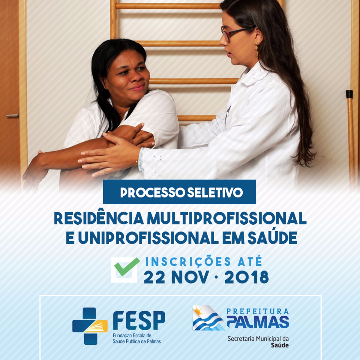 A Fundação Escola de Saúde Pública de Palmas (Fesp), em parceria com o Centro Universitário Luterano de Palmas (Ceulp/Ulbra) publicou edital de um novo processo seletivo para o preenchimento de vagas do Programa de Residência Multiprofissional e Uniprofissional em Saúde - 2019.