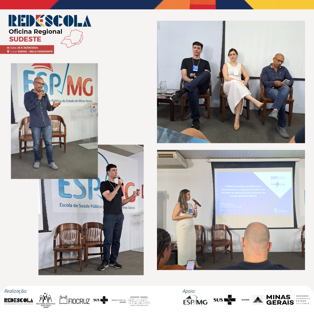 No contexto da Política Municipal de Educação Permanente e a descentralização nos Núcleos de Educação Permanente em Saúde Distritais (NEPS), contamos com a fala de Priscila de Paula Marques, Coordenadora Técnico Pedagógica do Departamento de Ensino, Pesquisa e Saúde Digital de Campinas. Por fim, pela Universidade Federal de Minas Gerais o Professor Raphael Augusto Teixeira de Aguiar, Coordenador Acadêmico do Núcleo de Educação em Saúde Coletiva da Universidade Federal de Minas Gerais trouxe como tema a Estação de Pesquisa de Sinais do Mercado de Trabalho e a Rede Observatório de Recursos Humanos em Saúde (RORHES).